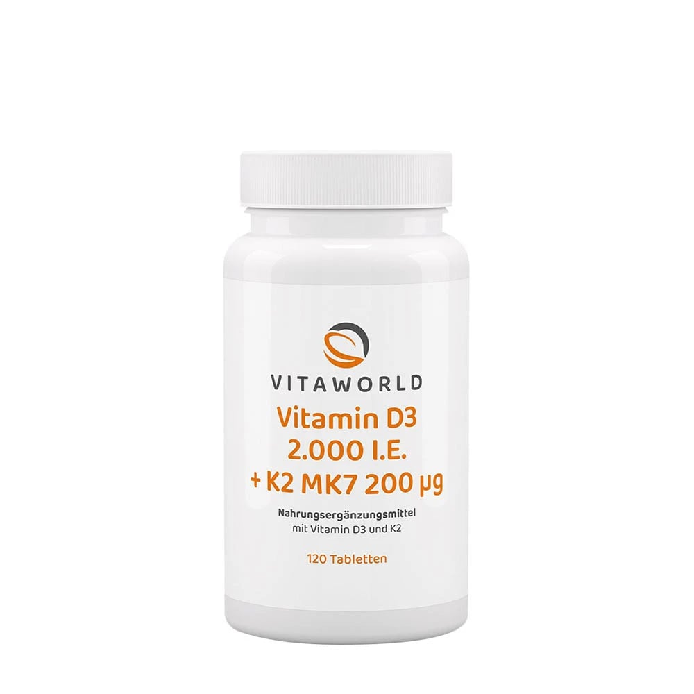 Vitaworld - Vitamin D3 2000 IE + K2 MK7 200 mcg, 120 tabletter