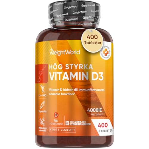 Vitamin D3 4000 IU - 400 tabletter (1 tablett varannan dag) - Solvitamin för immunförsvar, ben, tänder och muskler (EFSA) - 100% ren kolekalciferol vitamin D från WeightWorld