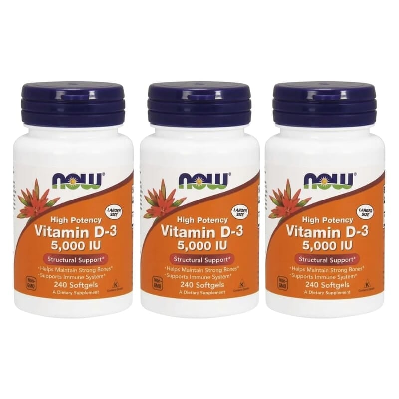 NOW Vitamin D-3 5000 IU 120 softgels 3-pack