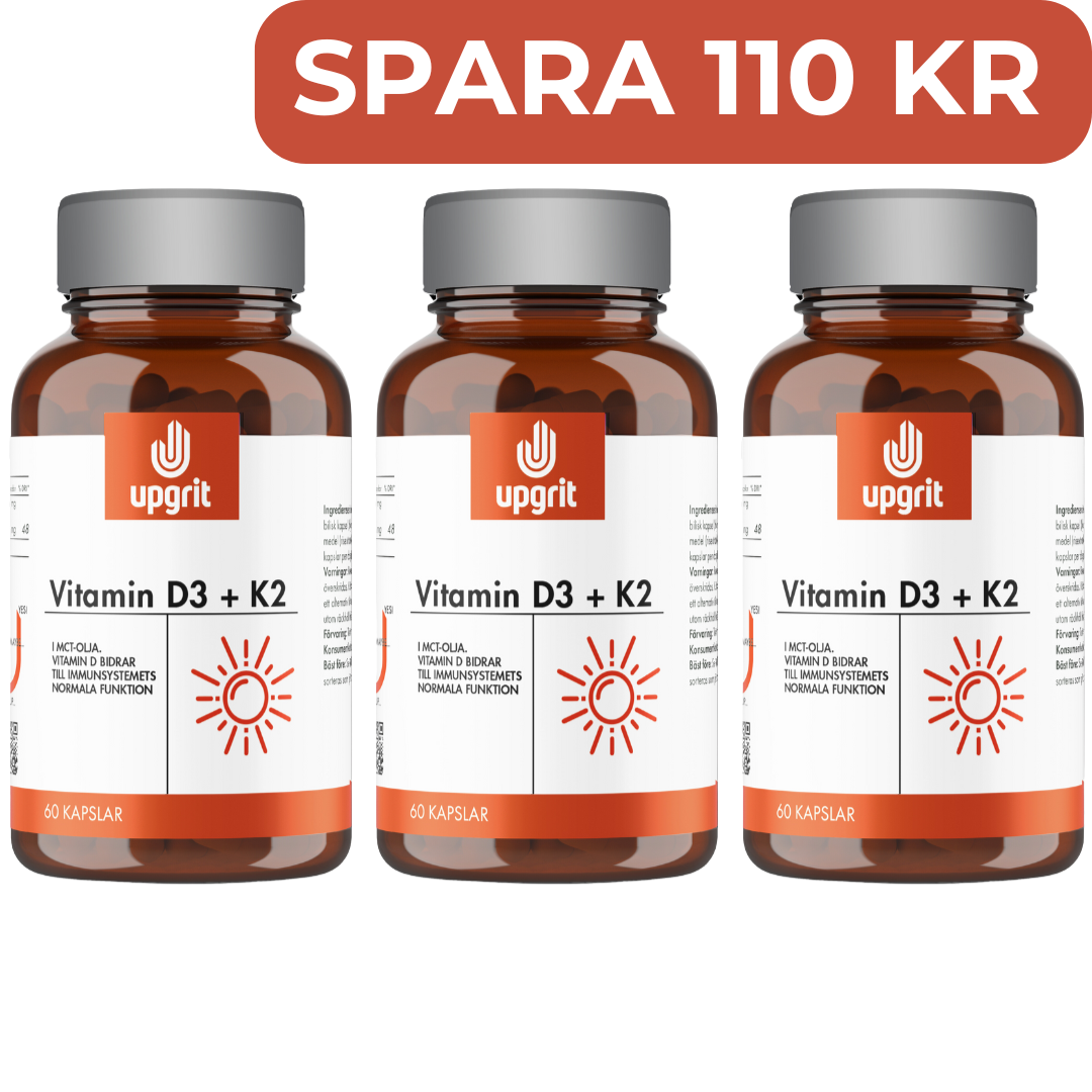 Familjepaketet 3-pack Upgrit Vitamin D3 + K2, 90 kapslar SPARA 110 kr