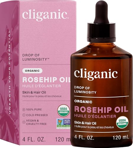 Cliganic Ekologisk rosenolja för ansiktet, 100% ren (120 ml) | naturlig kallpressad oraffinerad för hud, hår och naglar
