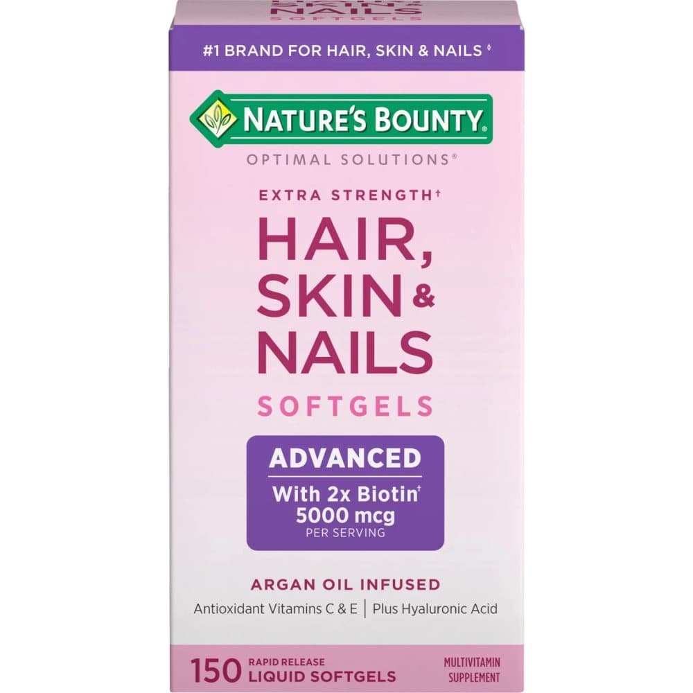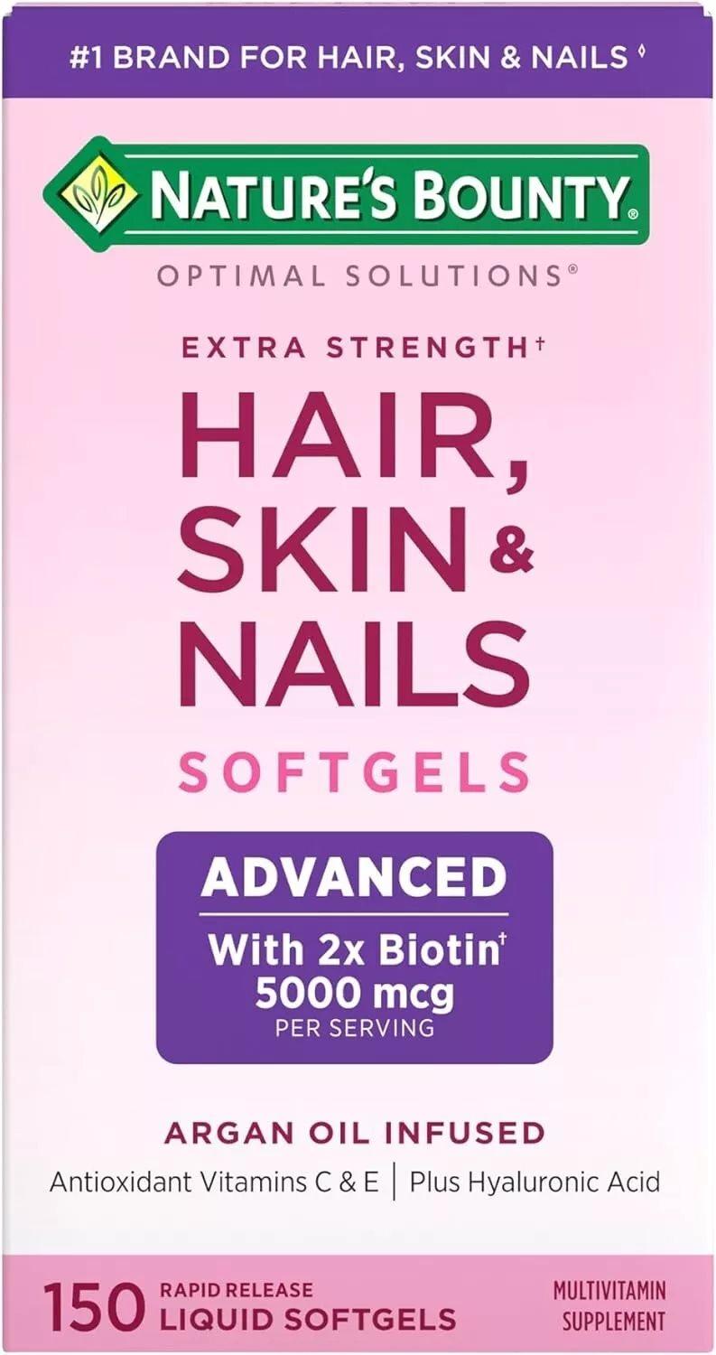 Nature's Bounty Hair Skin & Nails Biotin Hair Growth Supplements 150 Soft gels