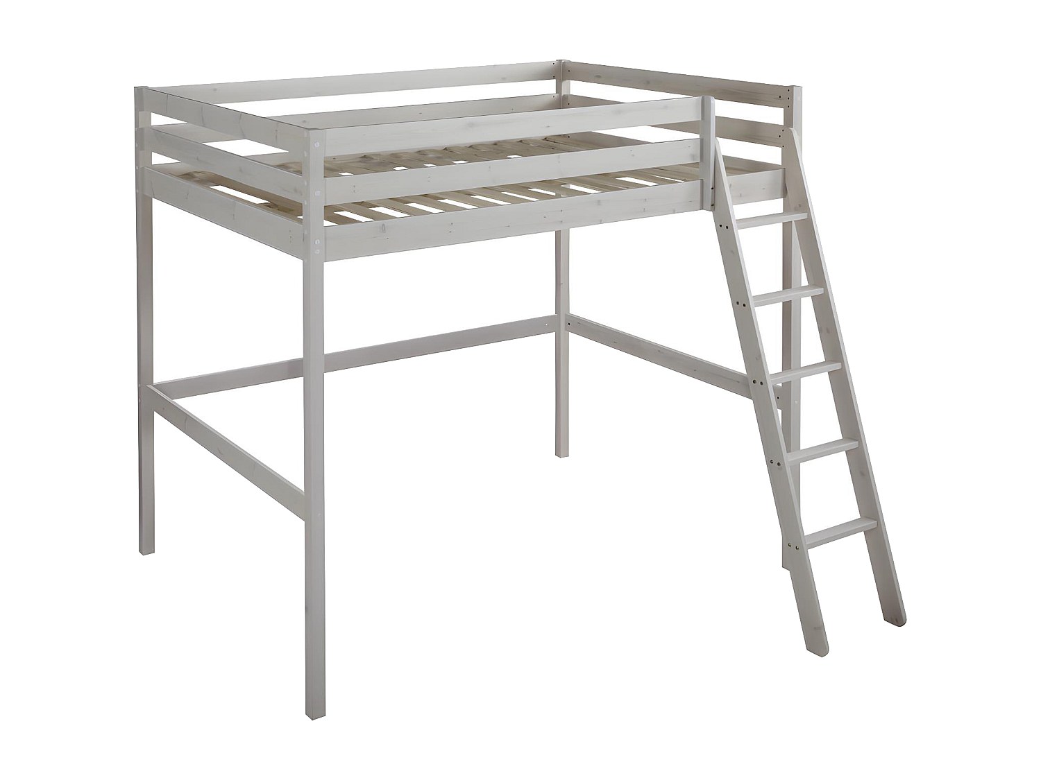 Loftsäng GEDEON II - 140 x 190 cm - Massiv furu - Vitbetsad
