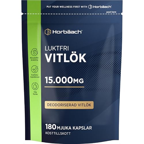 Vitlökskapslar Luktfria 15000mg | 180 Softgel Kapslar | Hög Styrka | Odourless Garlic Supplement | av Horbaach