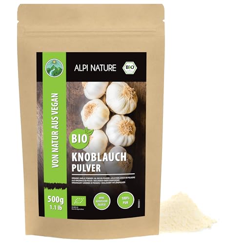 Ekologisk vitlök mald (500 g), ekologiskt vitlökspulver, vitlök från kontrollerad ekologisk odling, organiskt vitlökspulver laboratorium testad, 100 % rent och naturligt