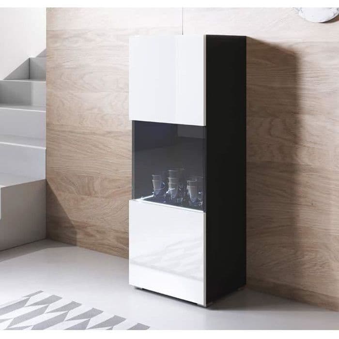 Vertikal Vitrin Skåp LED - LUKE V3 - Svart och Vit Blankt Finish LED - 1 dörr 3 fack