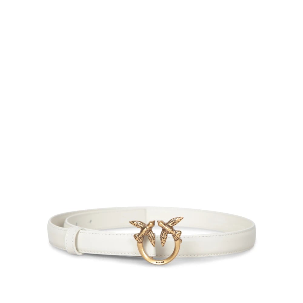Pinko, Accessoarer , Dam, M, Läder, Vitt bälte i fejkläder med guldspänne