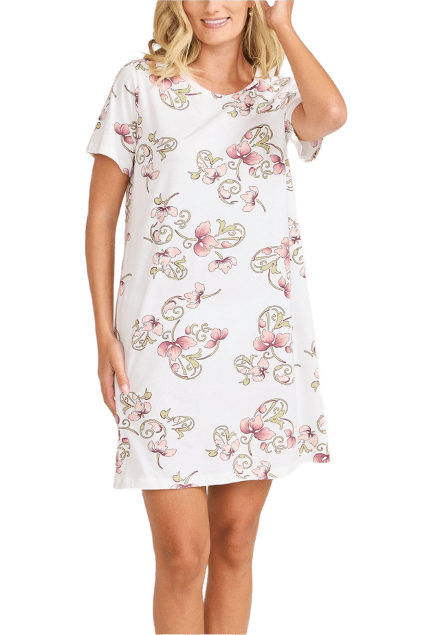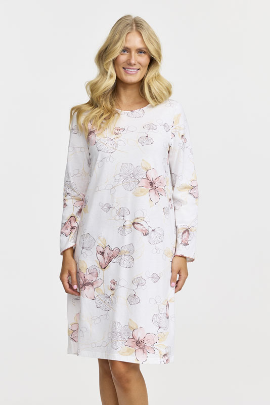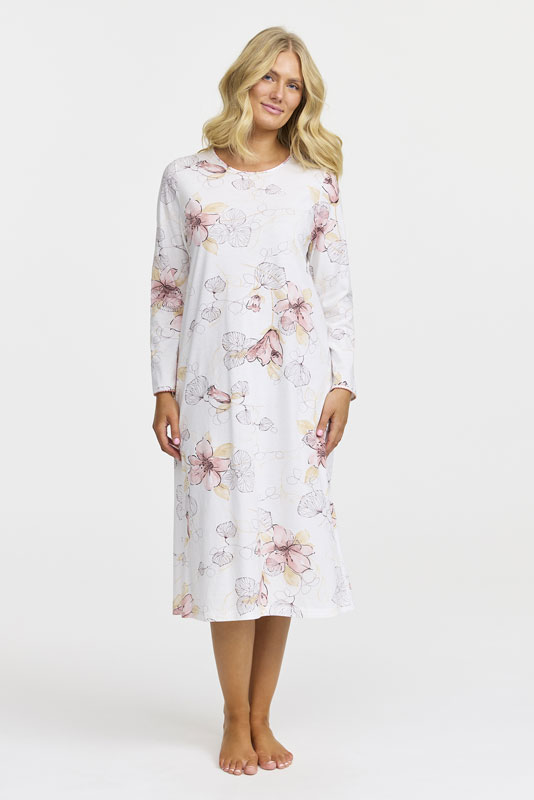 Damella of Sweden Lillian Lång Nattlinne Vit/Rosa L