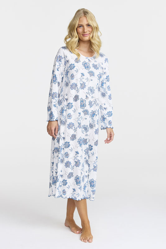 Damella of Sweden Harriet Lång Nattlinne Vit/Blå M