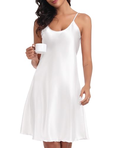 BestSale247 Sexig underklänning för kvinnor med justerbara remmar underkjolar nattlinne, Vit lång, L-XL