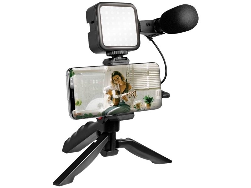 Logilink Vlogger-Starter-Kit, With Led Light, Microphone And Handle