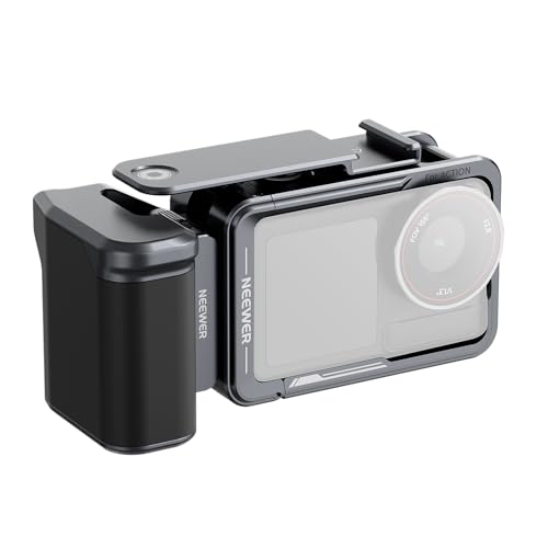 NEEWER Kit för bur- och sidohandtag kompatibel med DJI Osmo Action 5 Pro / 4/3, vlogging skyddande metall videorigg med magnetisk adaptermontering, kall skoslutare förlängningsstång, mörkgrå, AC014 +