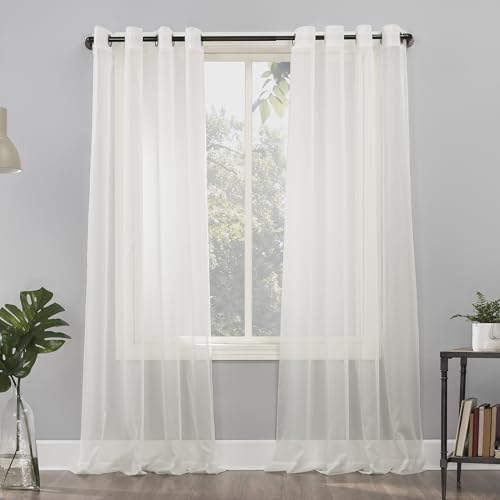 Uni -20332CN – 2-pack vit gardin transparent gardiner set vardagsrum voile gardin öljettgardin H x B 245 x 140 cm med blybandkant vit