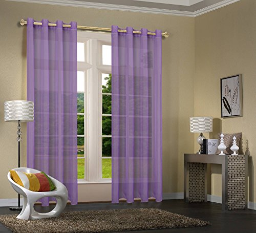 Uni -20332CN – 2-pack lila gardin transparent gardiner set vardagsrum voile gardin öljettgardin H x B 245 x 140 cm med blybandkant lila