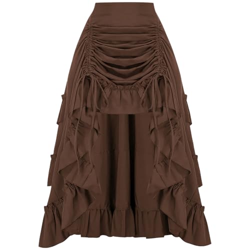 Dam halloween volang lager steampunk gotisk viktoriansk vintage långa kjolar elastisk midja medeltida renässans retro pirat maxikjolar, Brun, 38