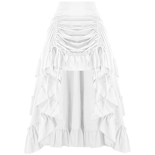 Dam halloween volang lager steampunk gotisk viktoriansk vintage långa kjolar elastisk midja medeltida renässans retro pirat maxikjolar, Vitt, 34