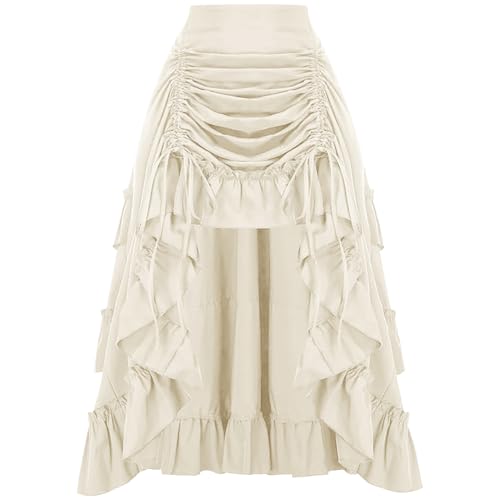 Dam halloween volang lager steampunk gotisk viktoriansk vintage långa kjolar elastisk midja medeltida renässans retro pirat maxikjolar, BEIgE, 36