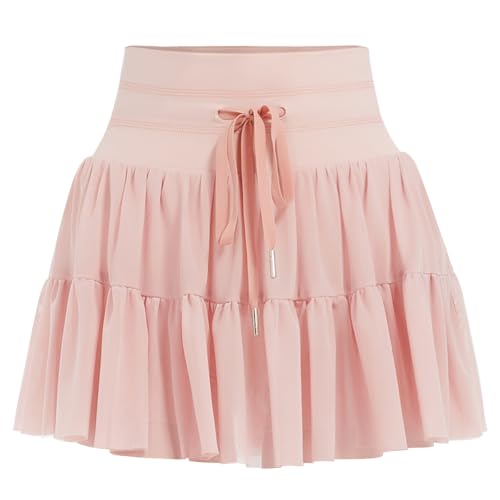 DGSHIRLDJO Tenniskjolar för kvinnor med shorts, fickor, hög midja, volang, atletiska golfshorts, löpning, träning, veckade kjolar, Rosa, XL