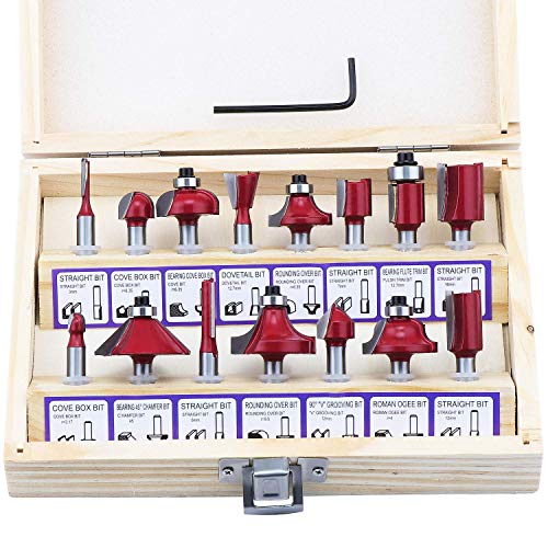 Flintronic Router Bit Set, 15 st 8 mm 1/2 tum skaft volframkarbid tippad router bit set | träfräs sågskärare | träbearbetningsverktygssats med plastfodral för hem och gör-det-själv