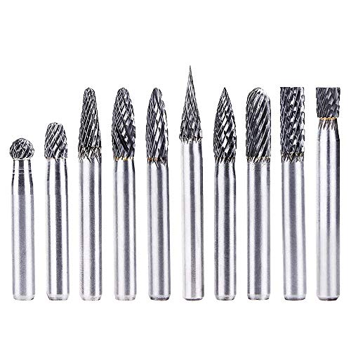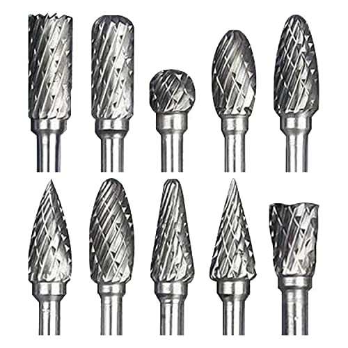 ZFYQ Roterande burr set snideri verktyg volframkarbid stål borr bit sliphuvud med 1/8 tum skaft för gör-det-själv träbearbetning, snideri, plastborrning, metallpolering, gravering, 10 st