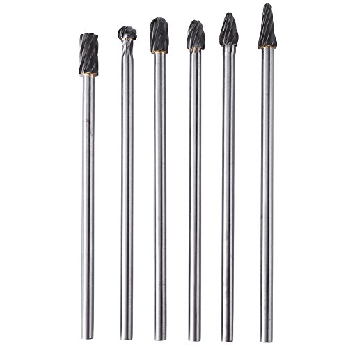 Bestgle uppsättning av 5 6 x 10 mm skärhuvud volframkarbid-dubbelskuren roterande snideri borrsats med 6 mm skaft slipmaskin borrning för gör-det-själv träbearbetning metallpolering gravering borrning