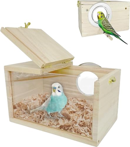 LATRAT undulat fågelbo transparent design, fågelhus av naturligt trä litet fågelbo, trä voljär, inkubator för kärleksfågel ellensittik, Lovebirds papegojor