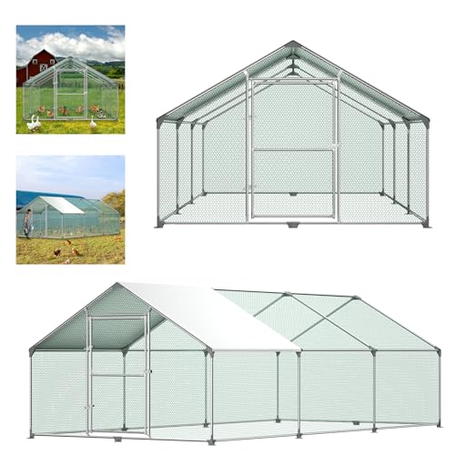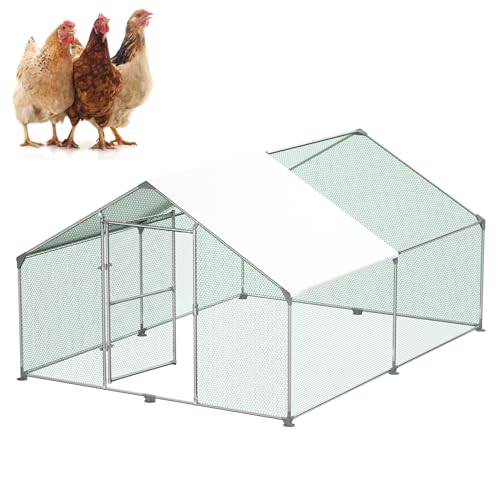 Froadp Hönshus Hönsbur Utomhus Stor Inhägnad för Frigående Höns med Solskyddsöverdrag av PE Bur för Höns Voljär för Kycklingar med Ram av Galvaniserat Stål för Kaniner Fjäderfäuppfödning (3x4x2m)