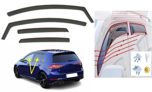 Uppsättning av 4 vinddeflektorer i kanal typ kompatibel med VW MK7 VOLKSWAGEN GOLF 7 HATCHBACK 5 dörrar R GTI GT 2012 203 2014 2015 2016 2017 2018 2019 2020 akrylglassidovisir fönsterdeflecs. tors