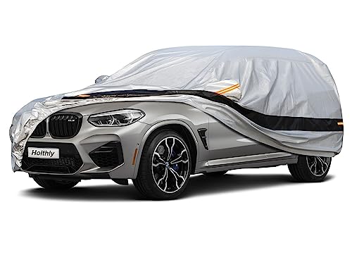 Holthly SUV-bilskydd, 100% vattentätt, SUV-bilskydd, helt bilskydd Regnsäkert solskydd Dammtät UV. Bilskydd för BMW X3, Mercedes-Benz GLC, Volvo XC60, Volkswagen Tiguan, Macan. silver C11...