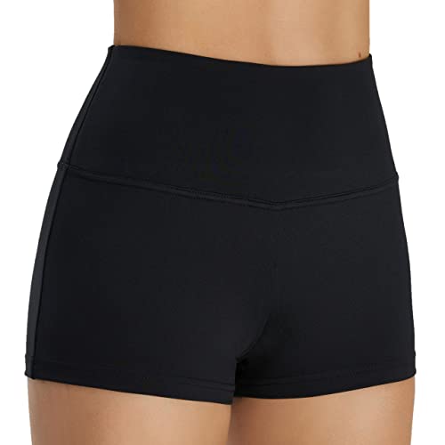 SUPRNOWA High Waist Boy Cut Shorts for Women Athletic Spandex Gym Workout Booty Volleyball Yoga Dance Shorts (Black, Small)