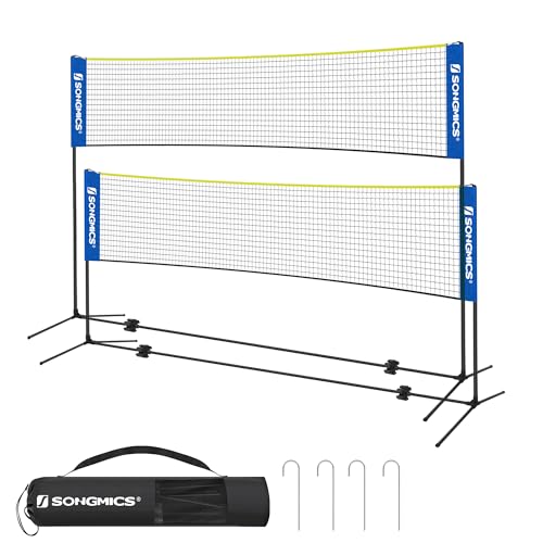 Songmics badmintonnät, 5 m, volleybollnät, höjdjusterbara stänger, bärbar set för tennis, strandvolleyboll, för trädgård, park, utomhus, blå och gul SYQ500Q02