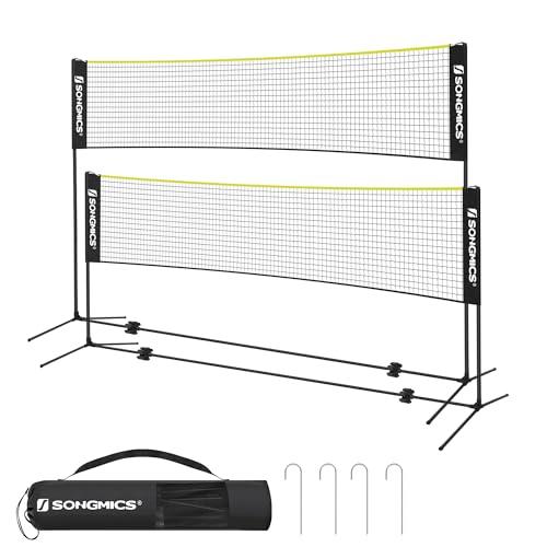 SONGMICS 4 m Badminton-nät, volleybollnät, höjdjusterbara stolpar, bärbart set för tennis, strandvolleyboll, för trädgård, park, utomhus, svart och gul SYQ400B02