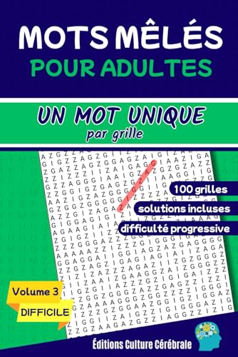 Mots mêlés: trouvez le mot unique Volume 3. 100 grilles, un seul mot caché à retrouver sur chaque page. Difficulté progressive pour booster votre cerveau.