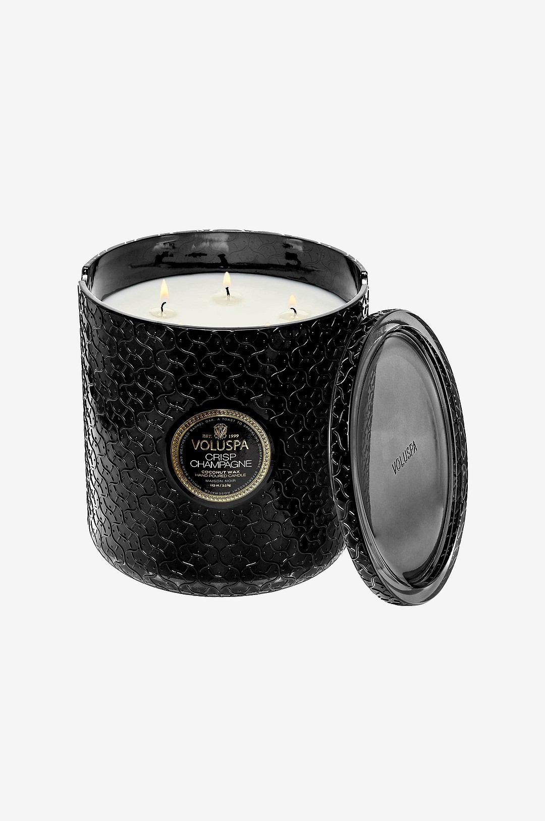 Voluspa 3-Wick Candle In Decorative Tin Crisp Champagne