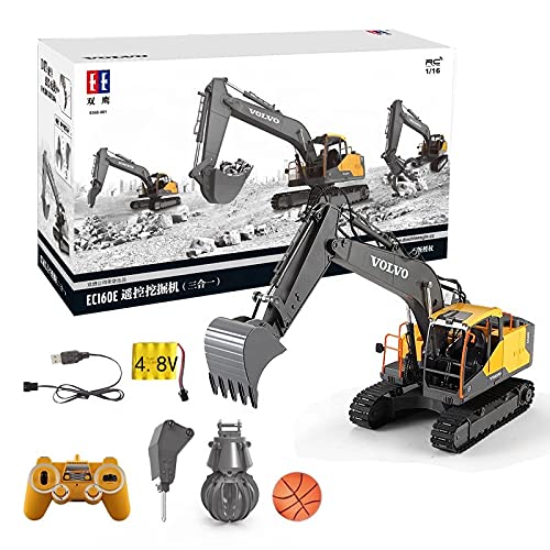 S-idee® E568-003 1/16 Volvo Licensed Rc grävmaskin med full funktion, 3 delar och kula, grävmaskin med fjärrkontroll och trähandtag, fjärrstyrd med batteri och laddare