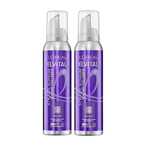 L'Oréal Paris Elvital Styliste skumbeständig, hårskum för XXL-volym, anti-platt effekt och extremt starkt grepp, hårstyling, mousse utan parabener, volymcollage, elvital stylist, 2 x 150 ml