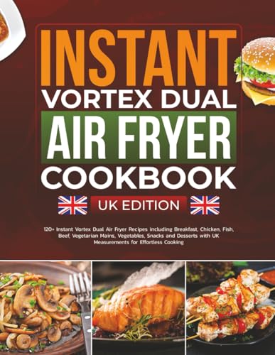 Instant Vortex Dual Air Fryer Cookbook UK Edition: 120+ Instant Vortex Dual Air Fryer Recipes including Breakfast, Chicken, Fish, Beef, Vegetarian Mains, Vegetables, Snacks & Desserts with UK Measur