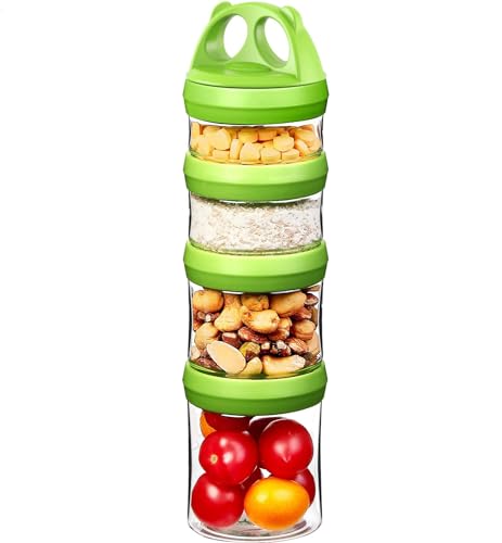 SELEWARE Matförvaringsbehållare lufttät praktisk portionsstorlek burkar och behållare BPA-fri stapelbara mellanmål krukor mutterlåda läckagesäker vridlås formel dispenser gåva 910 ml grön