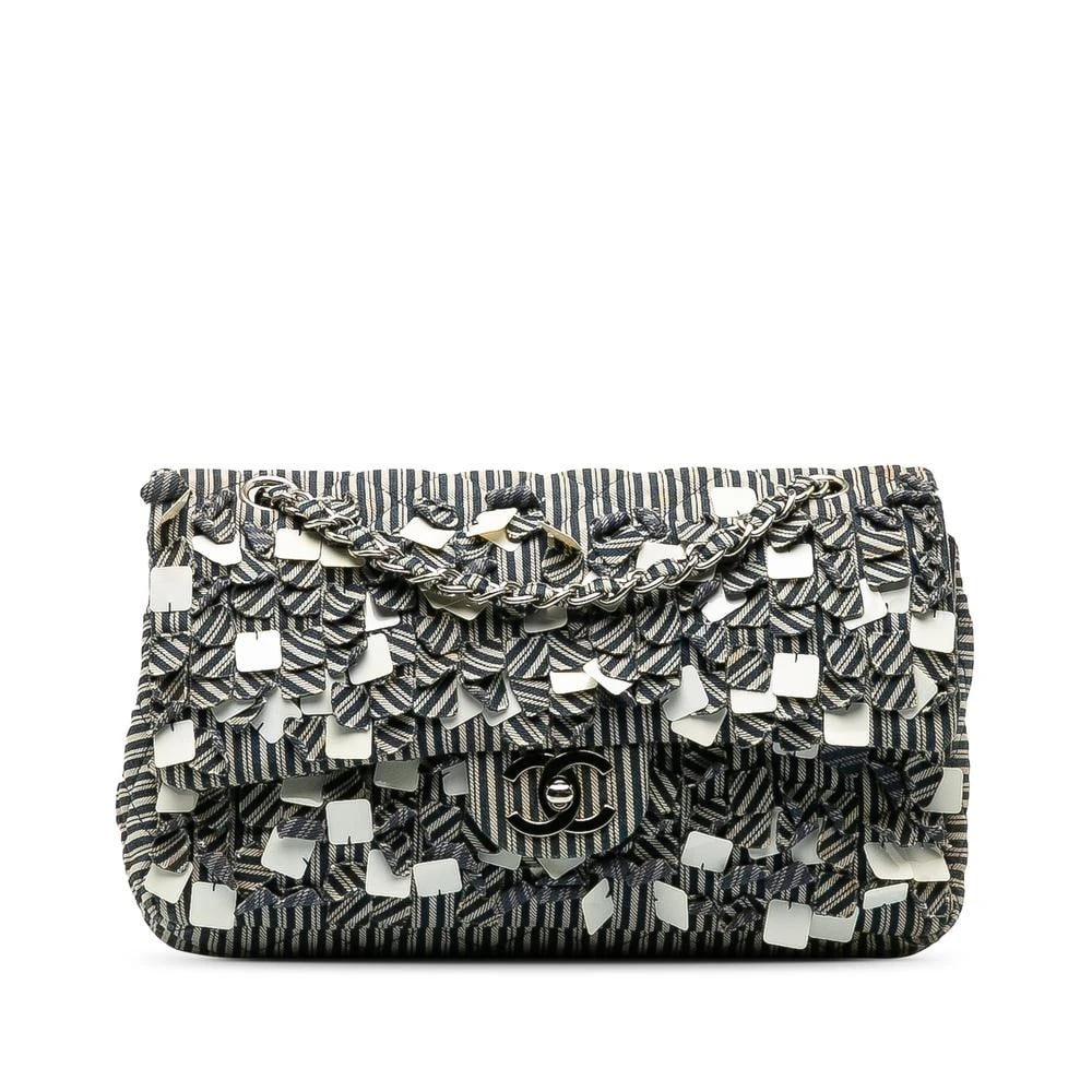 Chanel Vintage, Vintage , Dam, ONE Size, Förägt Randigt Design Axelväska med Kedja och Vridlås Stängning