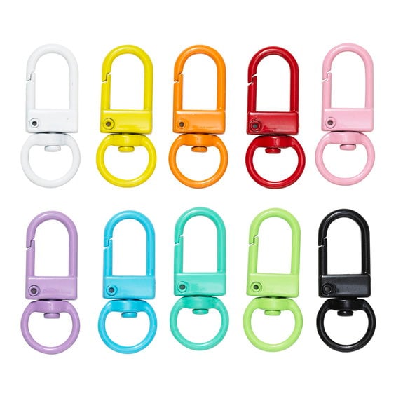 Nyckelringar, karbinhakar av metall med roterbart vridlås, 10-pack. Längd 33 mm