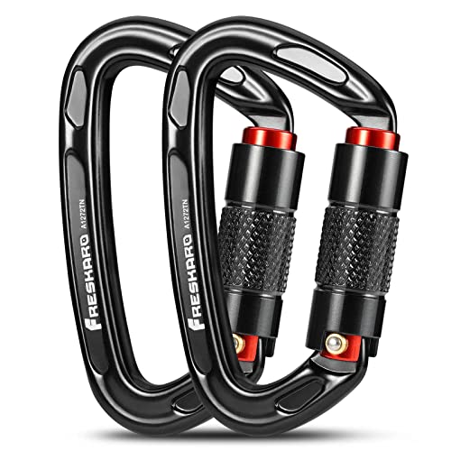 FresKaro CE- och UIAA-certifierade karbinhakar, 25 kN/2550 kg, vridlås, passar för bergsklättring, sprutning, camping, hundkoppel, hängmatta, gunga, yoga etc, D-formad, stor storlek, svart, 2 st