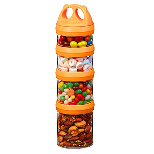 SELEWARE Bärbara och stapelbara förvaringsbehållare och burkar i tritan i 4 delar, med vridlås, för att förvara mat, torrmjölk, kosttillskott, mellanmål, nötter, drycker och mer, BPA- och ftalatfria,