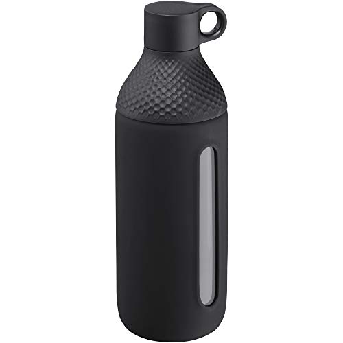 WMF Vattentät drickflaska i glas, 500 ml, borosilikatglas, drickflaska med skyddande fodral, glasflaska, kolsyra, vridlås, läckagesäker
