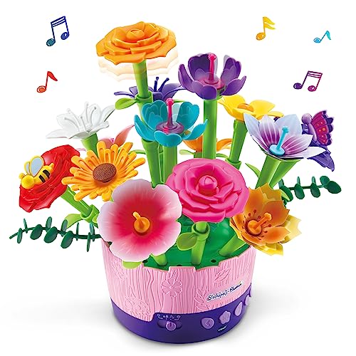 VTech Roliga blommor – magisk blomkruka för att montera och dekorera med musik och 100 färgglada delar – för barn i åldrarna 4–10 år