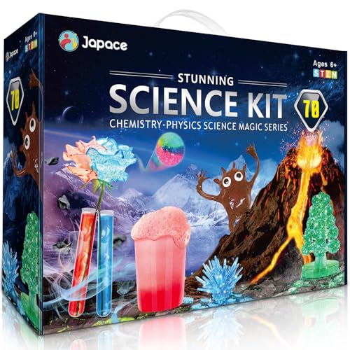 Japace Experimentlåda med 70 experiment för barn i åldern 4–12 år, STEM-leksaker, presenter för pojkar och flickor, kemi-set, odla kristaller, vulkan, gummiboll