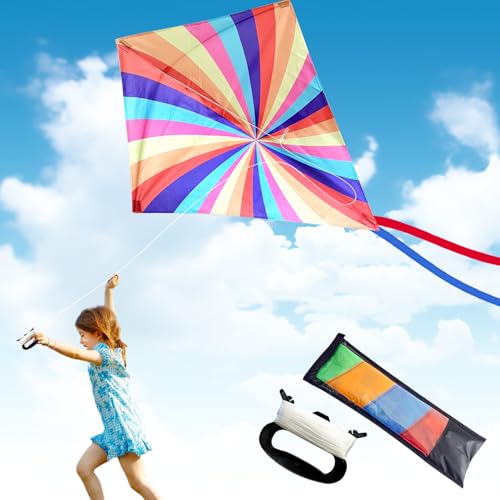 LURNODY 35,4 x 31,5 tum flygande rådjur barn flygande rådjur regnbåge enkeltrådig hjort vuxen, 164 fot drake rep, lämplig för utomhusflygande leksaker för vuxna och barn