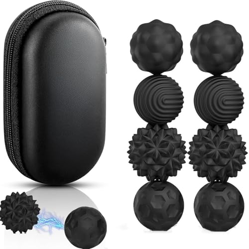 JoyJoyful 8 st anti-stressboll, barn, vuxen, fidget leksaker, anti-stress texturerad sensorisk sten, avslappningsverktyg för stresshantering, ADHD, autism (svart)