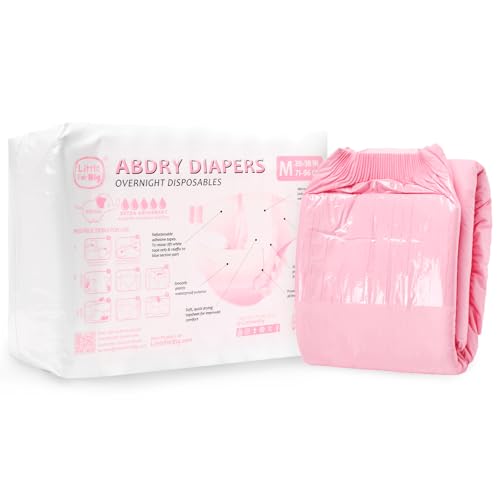 LittleForBig justerbar tejp vuxenblöja 10 delar – ABDry ultraabsorberande blöjor rosa (medium 71-96 cm)