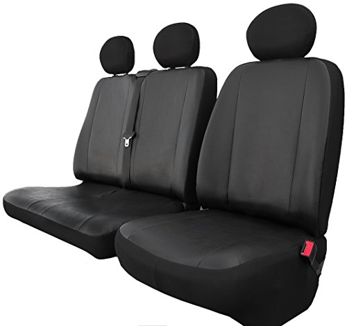 EcoBusRimers Bilsätesöverdrag anpassat ECO-LÄDER - lämplig för VW Bus T5-sätesskydd förarsäte + 2 passagerarbänkskydd - svart