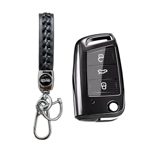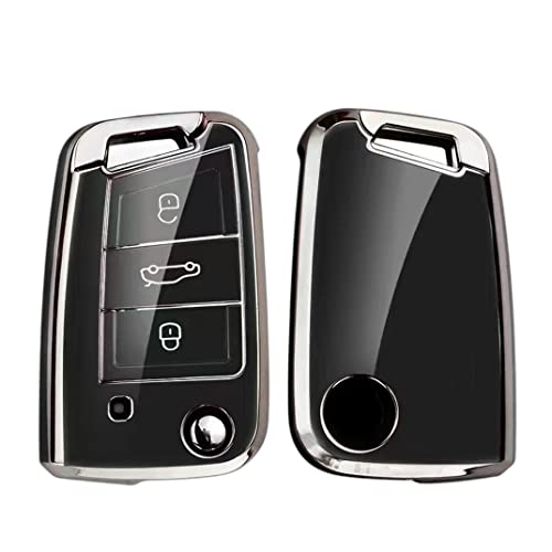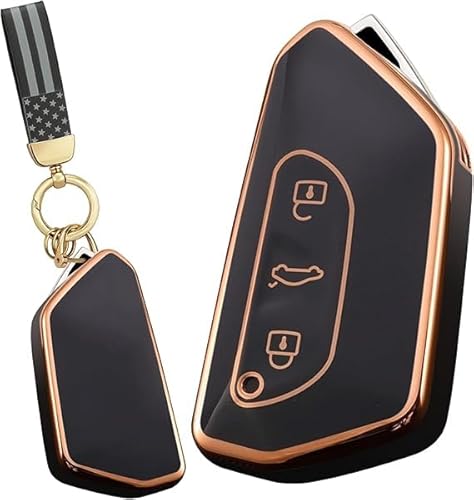 MEDZUK 【7 färger】Kompatibel med VW T-Cross 2018–2022 2023 bilnyckelfodral med tillbehör till nyckelring, svart, S
